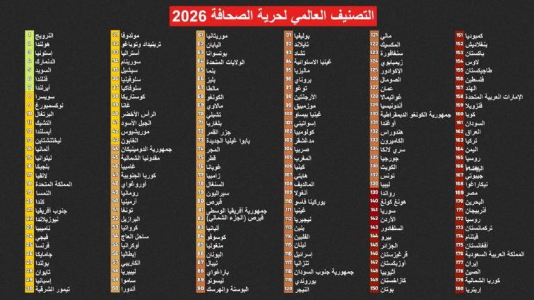 تراجعت موريتانيا إلى المرتبة 61 عالميًا في تصنيف حرية الصحافة لعام 2026، بخسارة 11 مركزًا مقارنة بالعام الماضي، رغم تعهدات رسمية سابقة بإصلاح قطاع الإعلام وتعزيز الوصول إلى المعلومات.